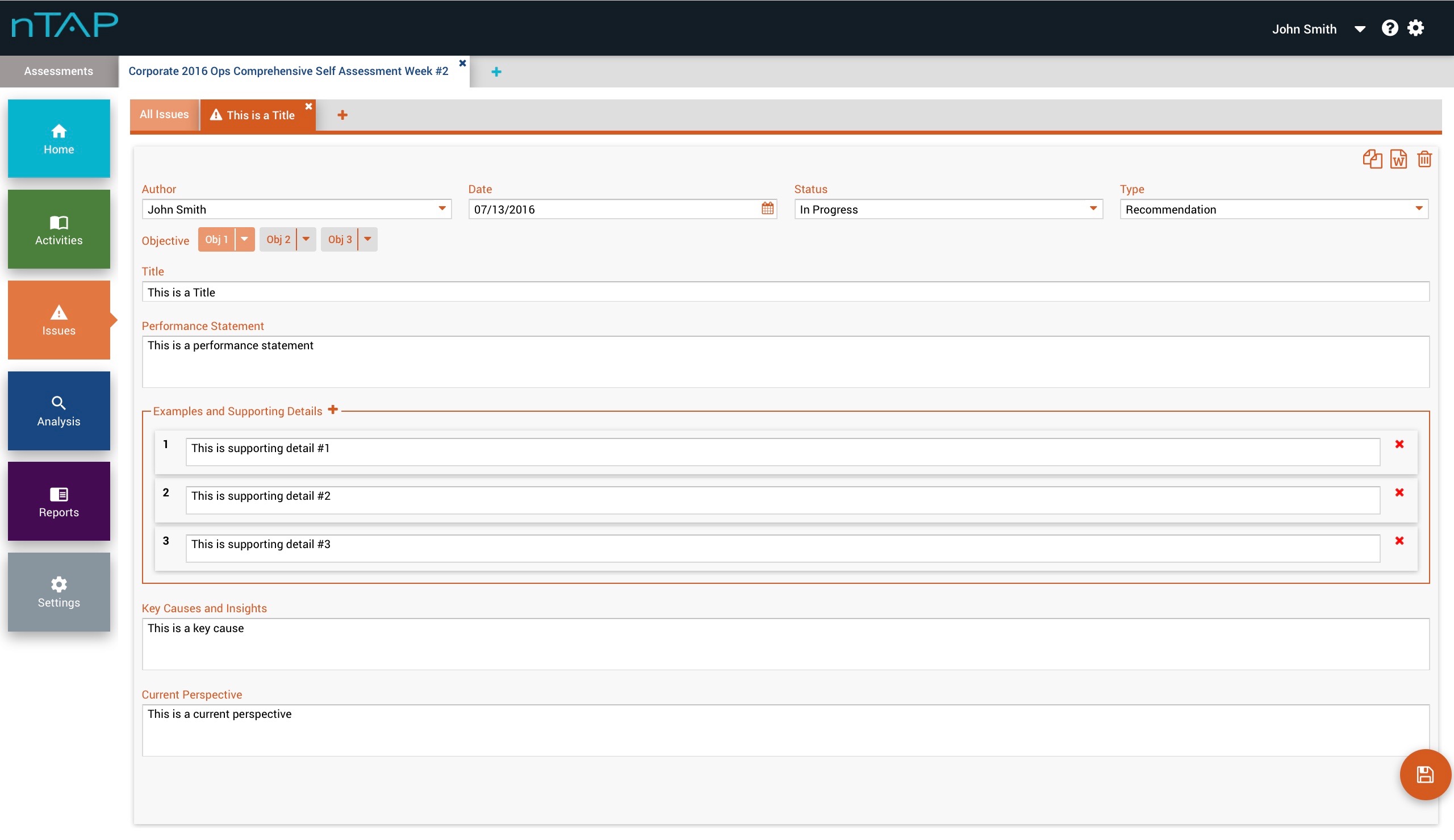 nTAP™ is a software system that methodically steps team members through the process of creating an assessment with an easy-to-use web interface.
